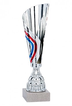 COUPE - Hauteur : 30 cm - Coupe : Matière synthétique - Base en marbre - Finition : Argent - Bleu-Rouge.