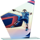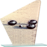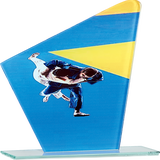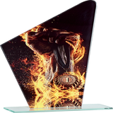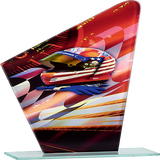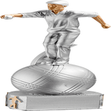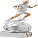 TROPHÉE DOUBLE COLONNE - Hauteur : 55 cm - Matière trophée : Parties synthétique et coupe métal - Base haute et basse : Bois vernis - Figurine résine : Grand choix de disciplines disponibles - Finition : Rouge et Or - Personnalisation : Choisir votre activité ou votre Logo après étape 1
